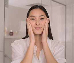 Use the pressure draining method to stimulate circulation, bring radiance back to your complexion, and maintain firm skin. 3 times on the cheeks, 3 times on the forehead, 5 times on the neck and décolleté.